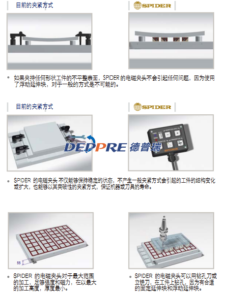 SPIDER MAGNET公司專注于機(jī)床的切割工藝的優(yōu)化,道具的快速負(fù)載和卸載,注塑機(jī)和沖壓機(jī)的模具。因?yàn)橐话愕墓ぷ鲓A緊方式不能滿足客戶的需求,為了緊跟行業(yè)發(fā)展的速度,需要有一種新的工作夾緊技術(shù),所以,我們公司開發(fā)了一種可靠和優(yōu)異的永久電磁夾頭。當(dāng)前,大部分好公司使用優(yōu)質(zhì)的機(jī)床和性能優(yōu)異的CAD/CAM系統(tǒng)來提高生產(chǎn)力。然而,由于普通的工作夾緊方式能力有限,與機(jī)床和CAD/CAM系統(tǒng)的價值不匹配,與不能100%發(fā)揮其能力。
